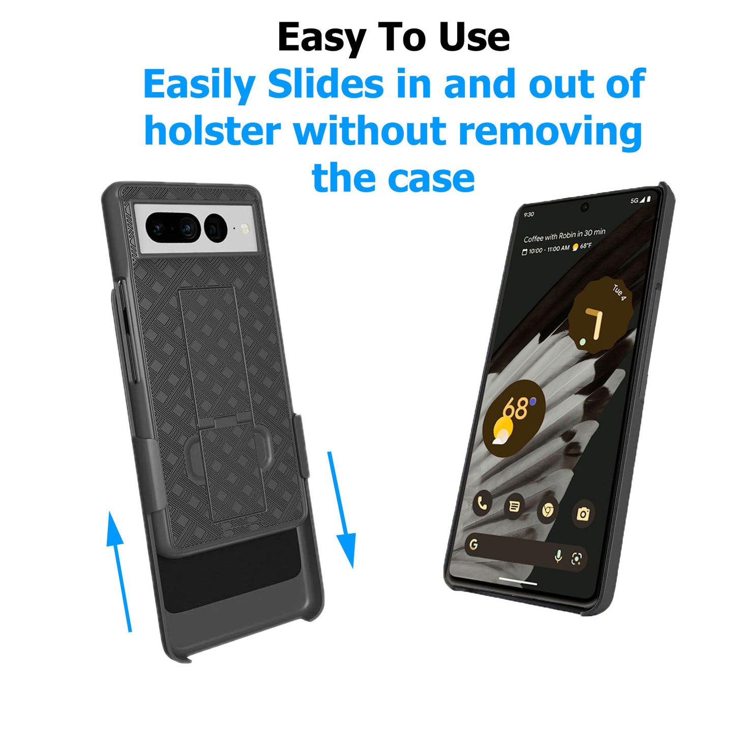 • BELT CLIP CASE: 2-in-1 carrying Solution and unique slide-in design for ease of use for Google Pixel 7 Pro (6.7") ONLY. High quality shell holster case with anti slip grip design. Belt Holster features a non-slip rubberized finish and open button cutouts for easy access to all functions.