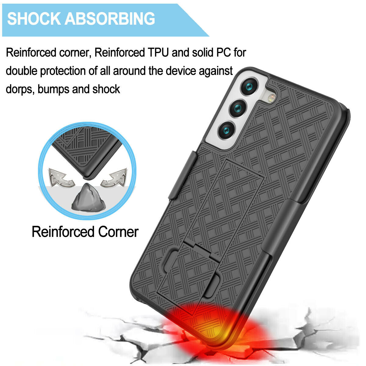 • 2-in-1 carrying Solution and Unique slide-in design for ease of use. High quality shell holster case with anti slip grip design for Samsung Galaxy S22 5G (6.1").
