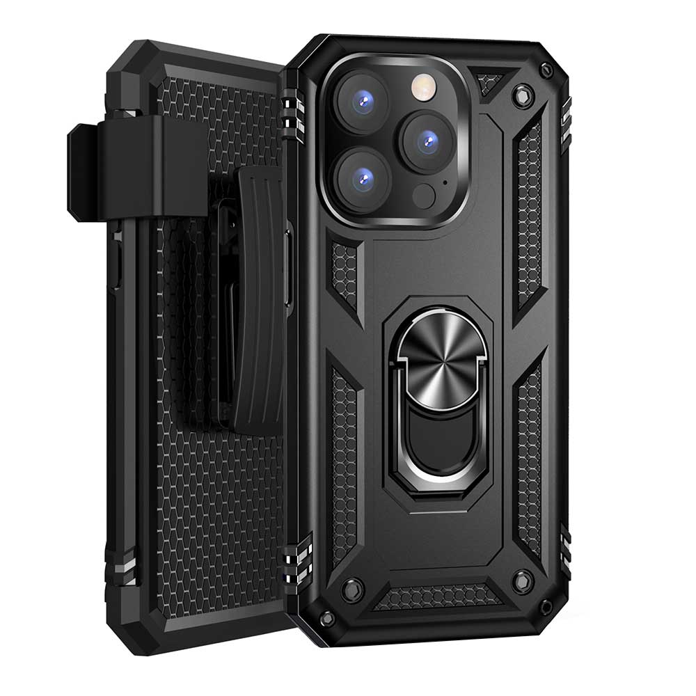 Made for the iPhone 15 Pro, this tough Armor Ring Case provides extreme protection and a finger loop to keep your phone in your hand, whether from accidental drops or attempted theft. Also doubles as a stand. The holster’s multi-functional belt clip enables a 360-degree rotation which makes removing your phone hassle-free at any angle