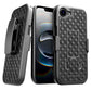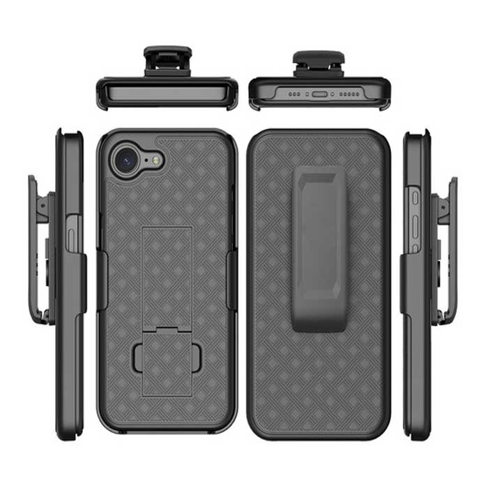 The high-quality build with its smart design allow you to carry your new iPHONE 16e (6.1") around easily and comfortably. Slim, stylish design features rugged skin tough enough to handle bumps, scratches and shocks.This swivel holster and rear cover is exactly what you need. Rubberized Swivel Holster with Rear Cover Shell included. Allows your phone to be worn on a waistband or belt and can be taken off of the belt clip without removing it. A locking swivel belt clip is easily locked into an extended position and provides different viewing angles while watching movies or video calls, also rotatable 180 degrees. The case can be also be used with holster or as a separate, slim carrying solution. Advanced locking mechanism securely holds phone in place. Precisely cut to preserve full use of volume buttons, charger, camera, microphone, headphone jack, and all other ports.