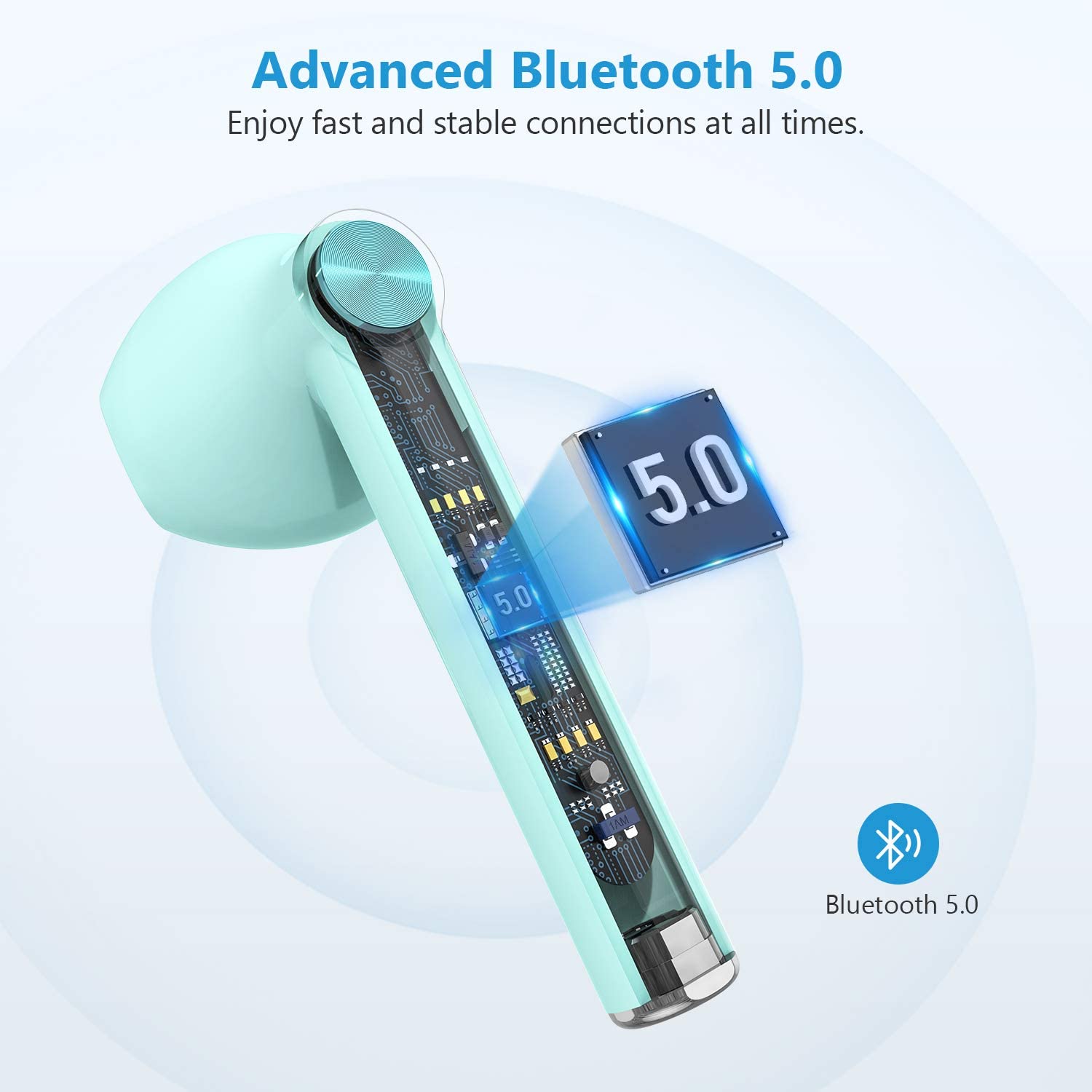 True Wireless Earbuds technology transmits music from your phone to the headphones, so music plays reliably and consistently whether your phone is in your nearby gym bag, pocket or strapped to your arm, and provide clearly superior sound with powerful deep bass. Premium Sound Quality: With built-in 10mm aperture drivers our earphones deliver superior sound with powerful bass, clear vocals, and crisp high tones. One-Step Pairing Connectivity: When you take your earbuds out from the charging case, your earbuds will power on and pair automatically, simply select "T16" on your phone to pair for the first time. Now with version 5.0 technology that ensures fast and stable connections, as well as low power consumption and latency.